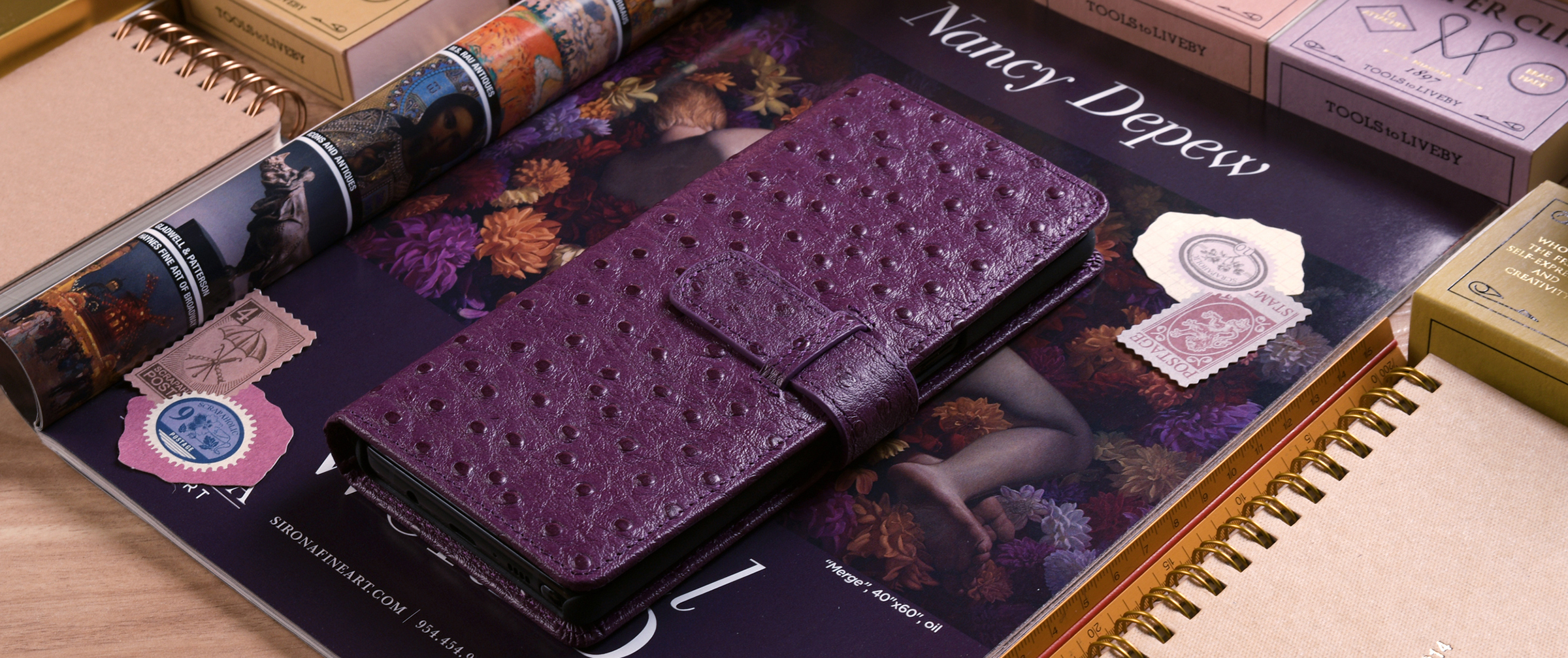 外部素材 / オーストリッチエンボス(牛革)プラム - A77