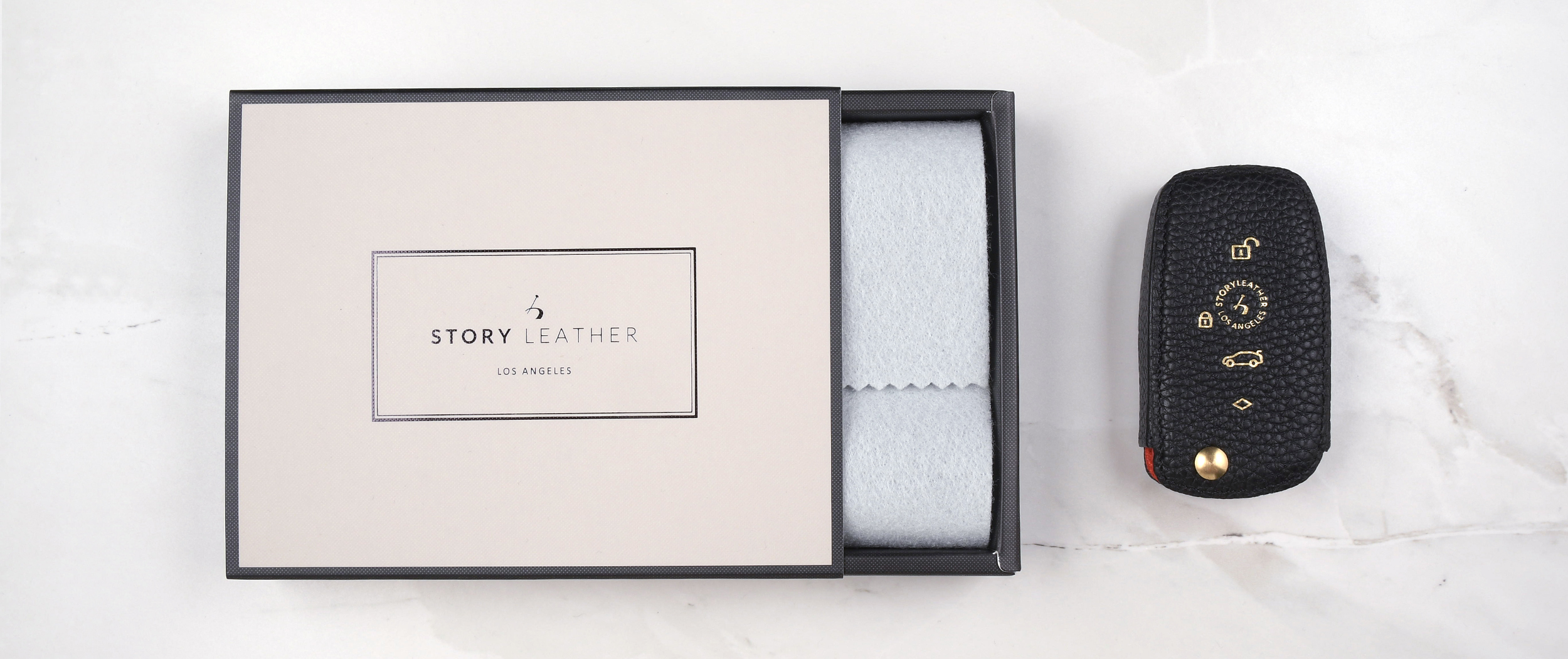 STORY LEATHER製品に使用している革は厳選された牛革・羊革等の本革のみを使用しており、内部には豚革、人工皮革を使用しております。長年革製小物製造に従事してきた職人が裁断、漉き、折込加工を施しミシン一目一目丁寧に仕上げております。本製品は牛本革へのこだわりだけではなく、特別な設計でリモコンボタンが簡単に操作できるように開発しました。カバーからリモコン本体を取り出さずに使用できます。リコモンキーもファッションアイテムに変身します。