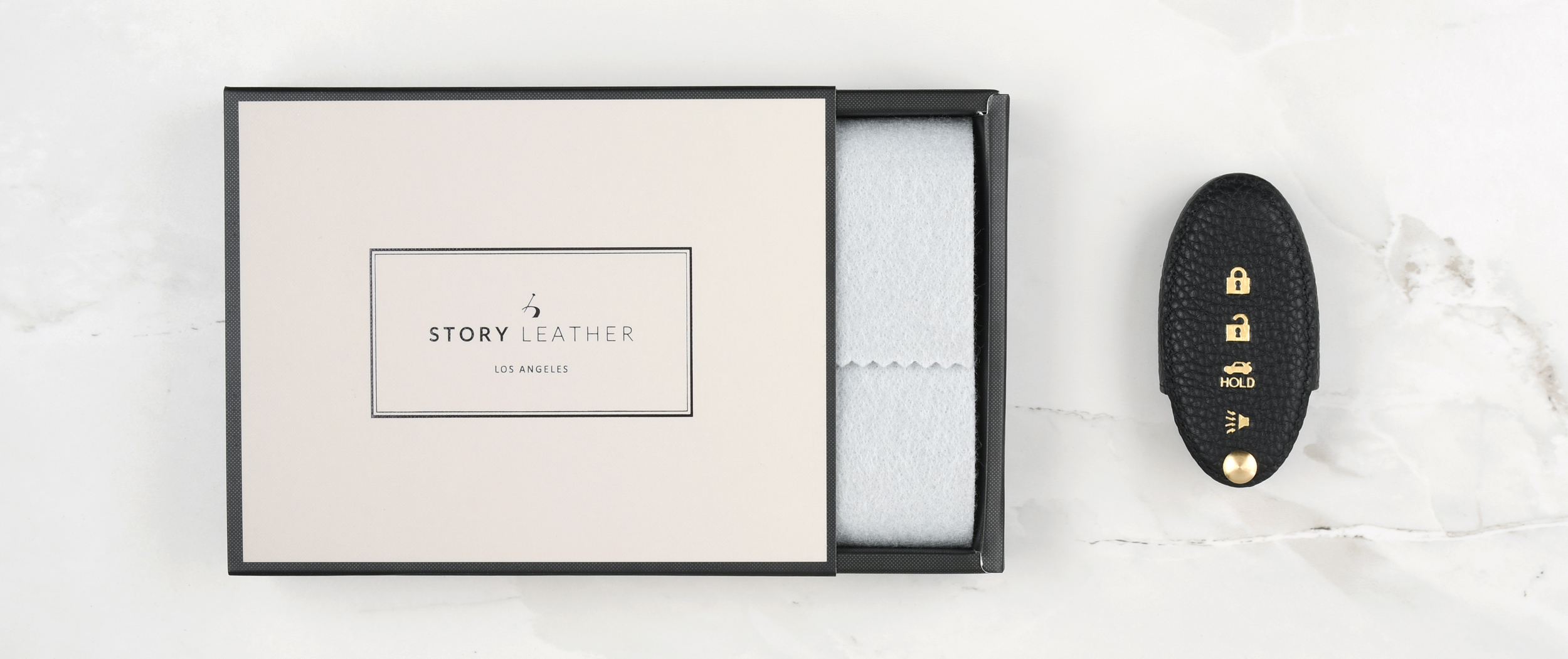 STORY LEATHER製品に使用している革は厳選された牛革・羊革等の本革のみを使用しており、内部には豚革、人工皮革を使用しております。長年革製小物製造に従事してきた職人が裁断、漉き、折込加工を施しミシン一目一目丁寧に仕上げております。本製品は牛本革へのこだわりだけではなく、特別な設計でリモコンボタンが簡単に操作できるように開発しました。カバーからリモコン本体を取り出さずに使用できます。リコモンキーもファッションアイテムに変身します。